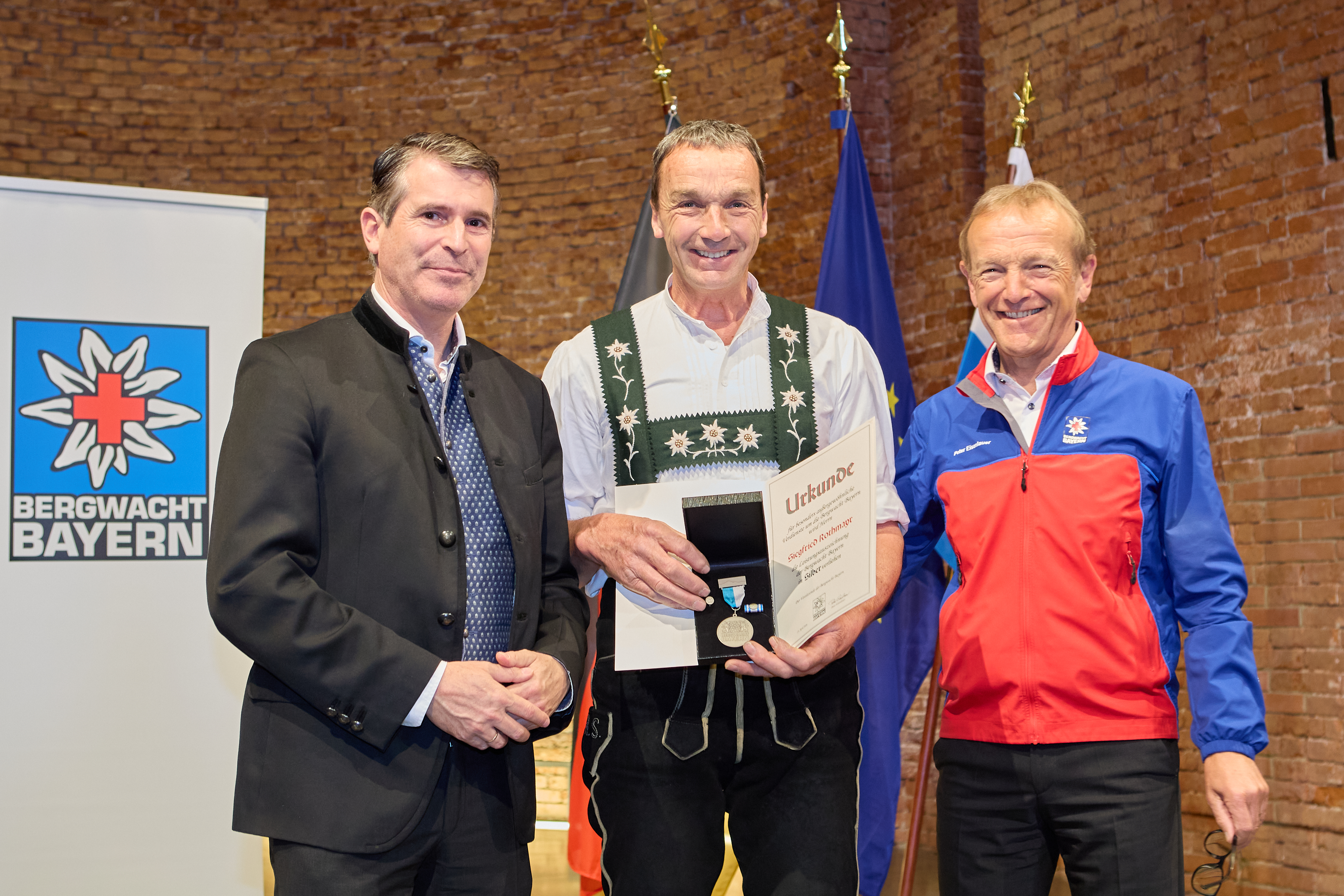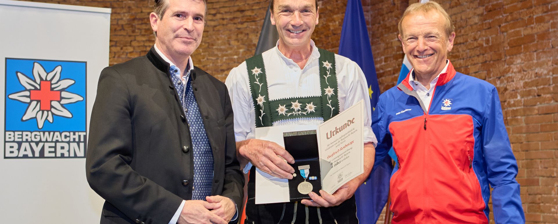 Siegfried Rothmayr wurde mit der Leistungsauszeichnung in Silber der Bergwacht Bayern geehrt. Seit über 40 Jahren ist er aktives Mitglied der Bergwacht Oberstdorf, seit 1990 Einsatzleiter und Luftretter. In dieser Zeit war er an über 5.000 Einsätzen im Sommer und Winter beteiligt. Sein enormer Erfahrungsschatz und seine Führungsqualität machen ihn zu einer prägenden Persönlichkeit unserer Bereitschaft. Mit großer Hingabe begleitet er junge auch Einsatzkräfte im Dienst und gibt sein Wissen weiter.
