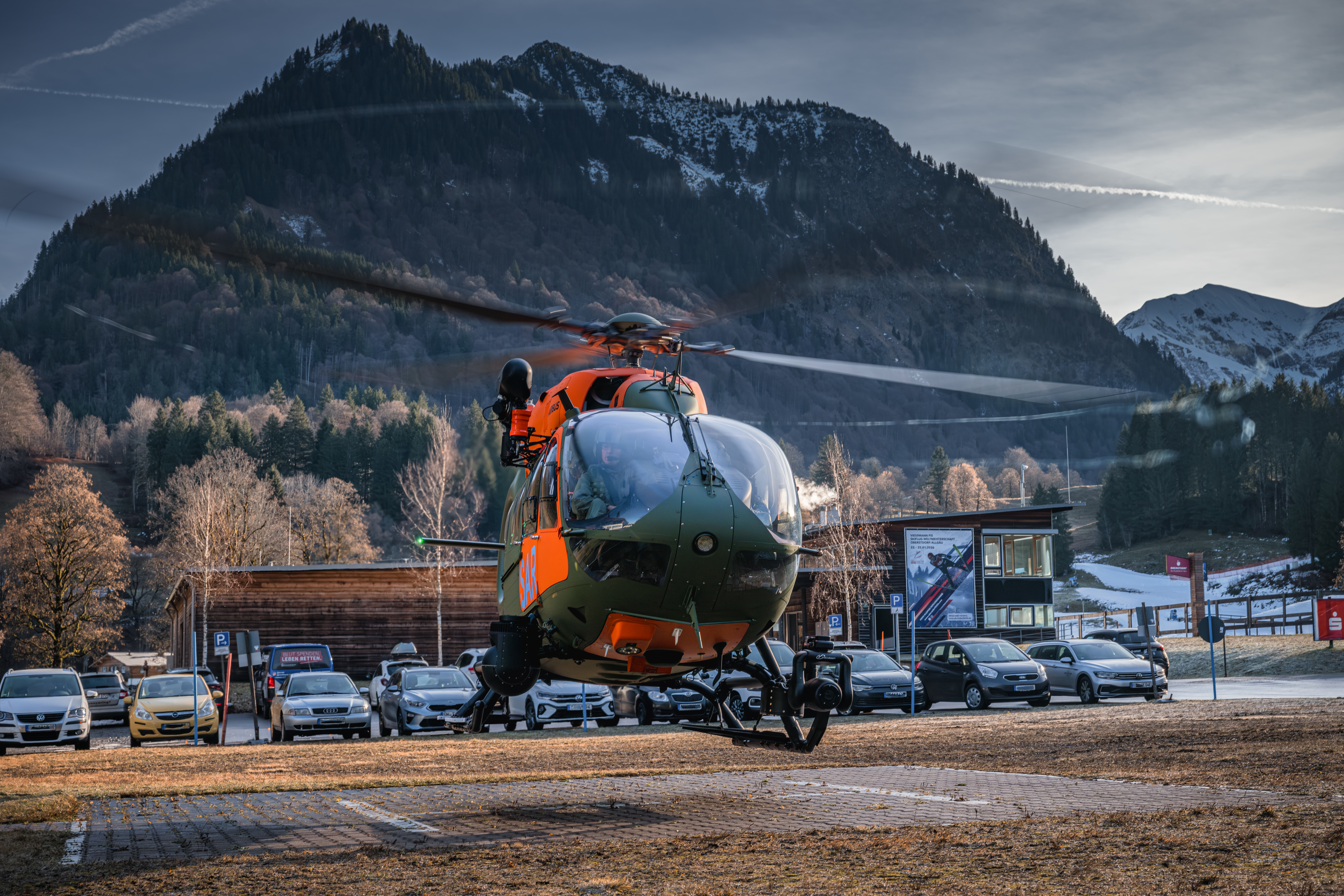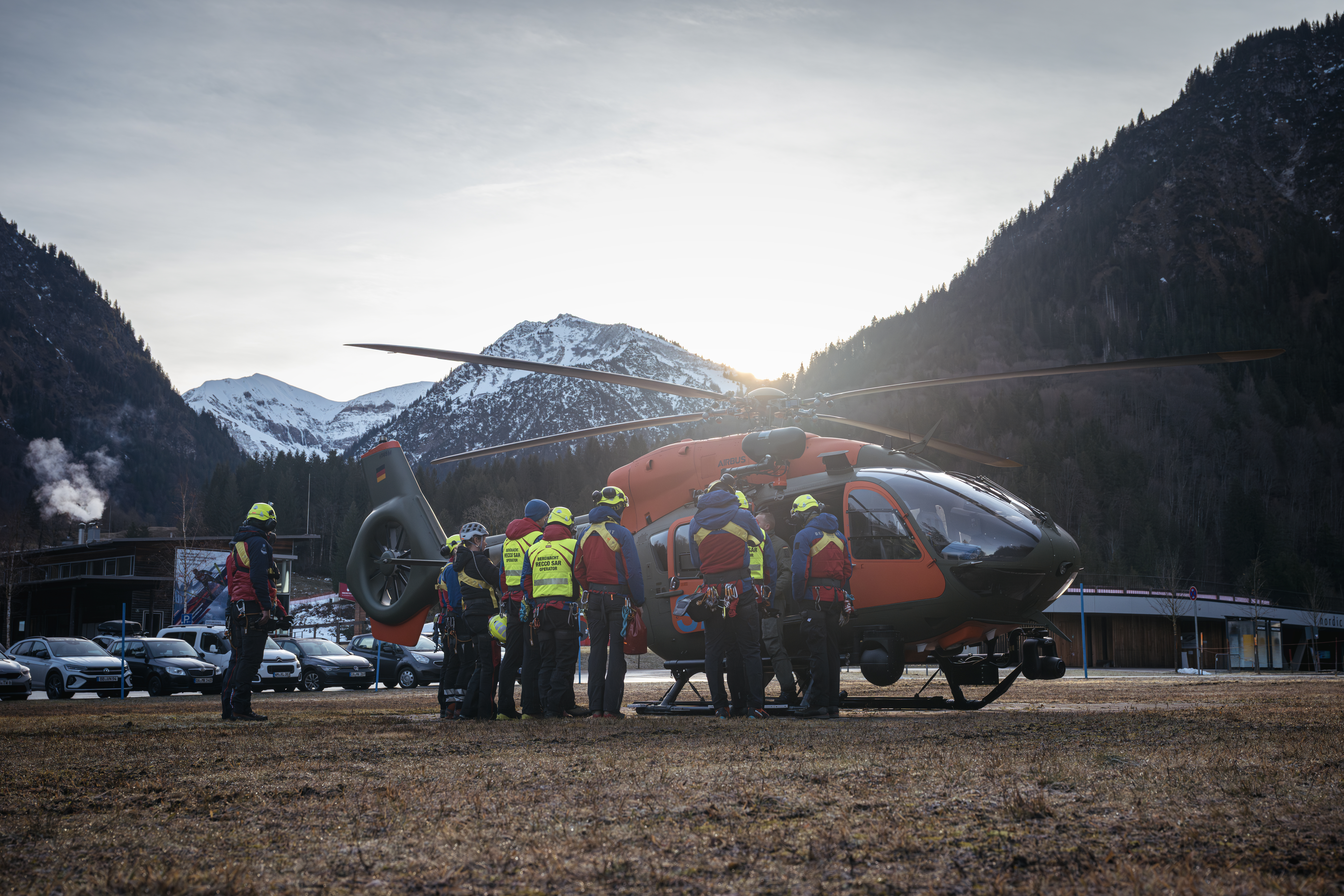 14.12. – am sogenannten „Gesprengten Weg“ Richtung Waltenberger Haus / Bacherloch: Eine 43-jährige stürzt etwa 120 m über eine gefrorene Schneeflanke und eine Felswand in das lawinenverschüttete Bachbett. Die Meldung geht erst ca. 20 Minuten später ein; beim Anflug geht die Dämmerung bereits in die Nacht über. Aufgrund der hohen objektiven Gefahren (Lawinen-, Stein-, Eisschlag) ist keine Notarztversorgung vor Ort möglich. Wir führen eine Crashrettung ohne notfallmedizinische Vor-Ort-Versorgung durch; RK2 fliegt die schwerverletzte Patientin in eine Klinik. Hinweis: Das Bacherloch ist im Winter stark exponiert; sichere Zeitfenster sind sehr kurz.