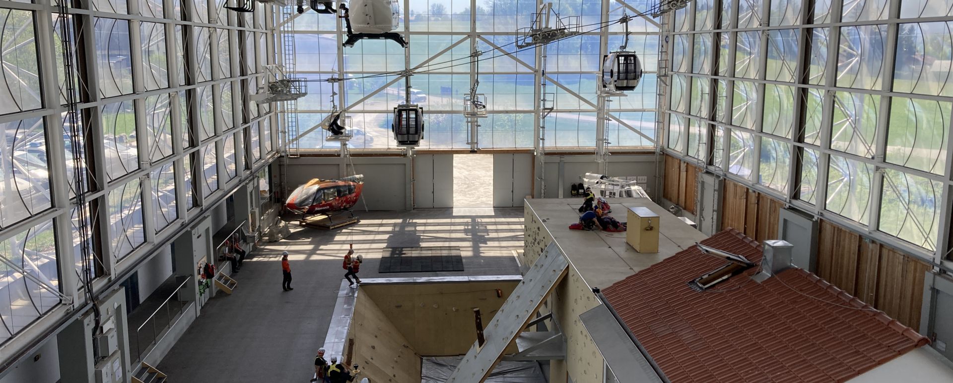 Hier trainieren wir realitätsnahe Helikopterübungen, Winden- und Taubergungen, Patientenrettung, Crew-Resource-Management sowie Funk- und Sicherheitsabläufe.