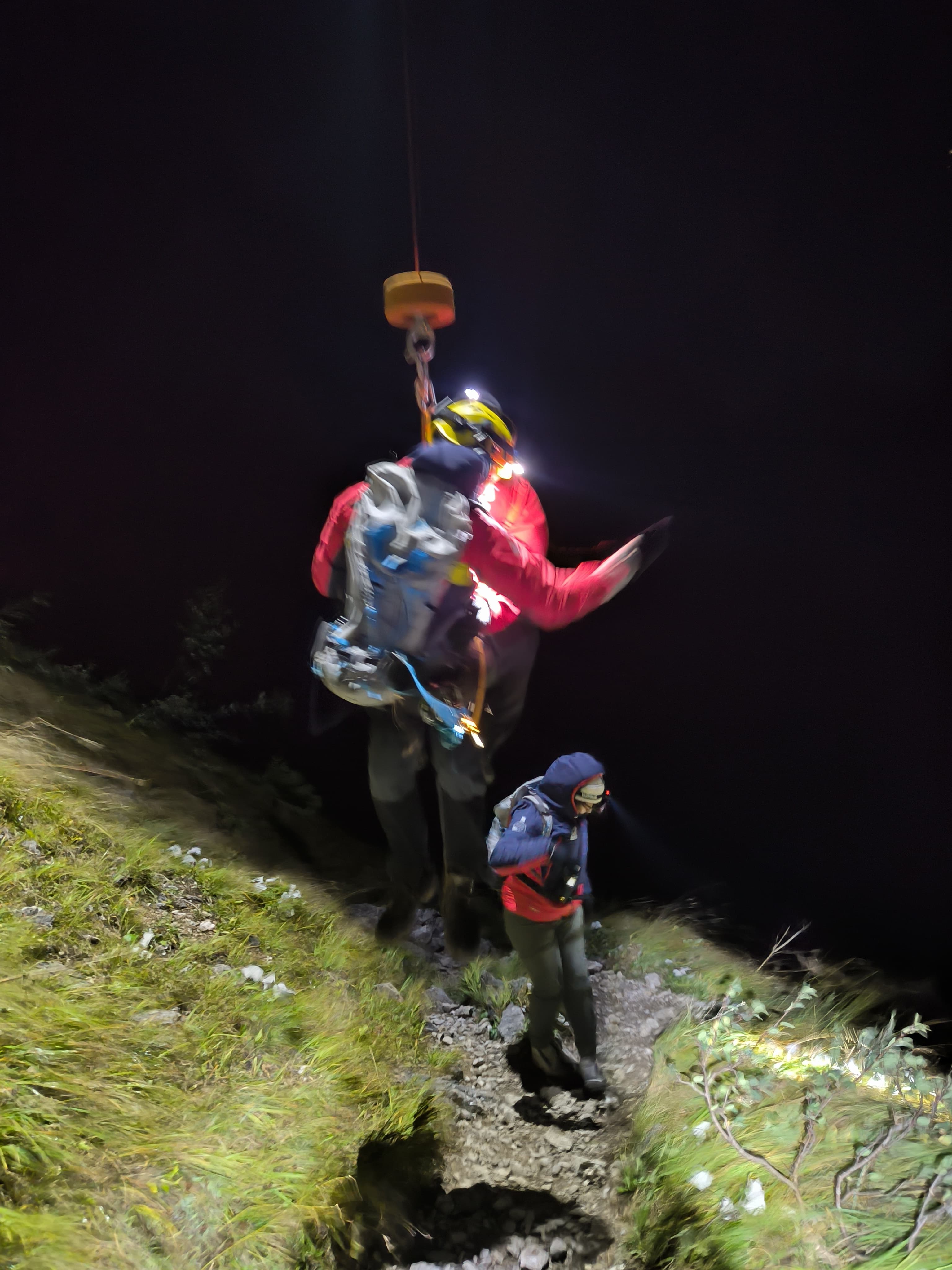~22:00 Uhr Windenbergung. Patient weiter betreut, ins Tal verbracht und zur Abklärung in die Klinik gebracht.