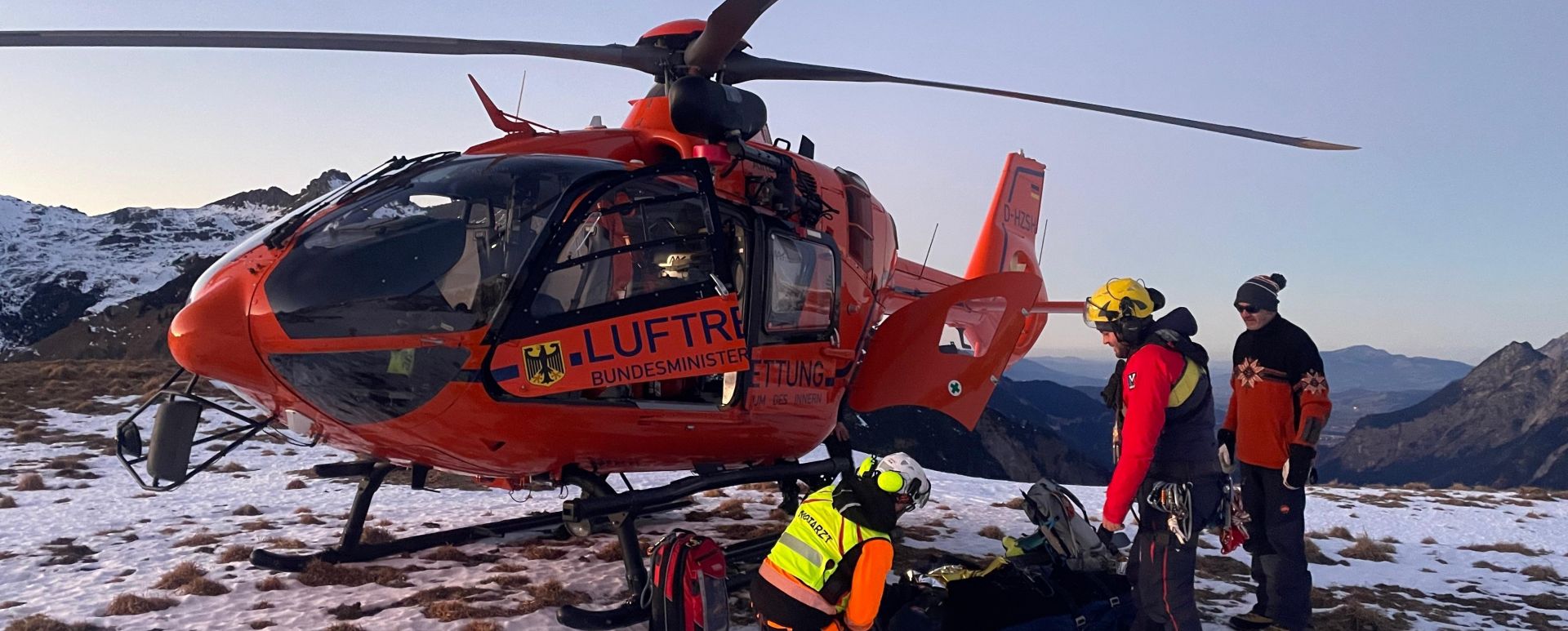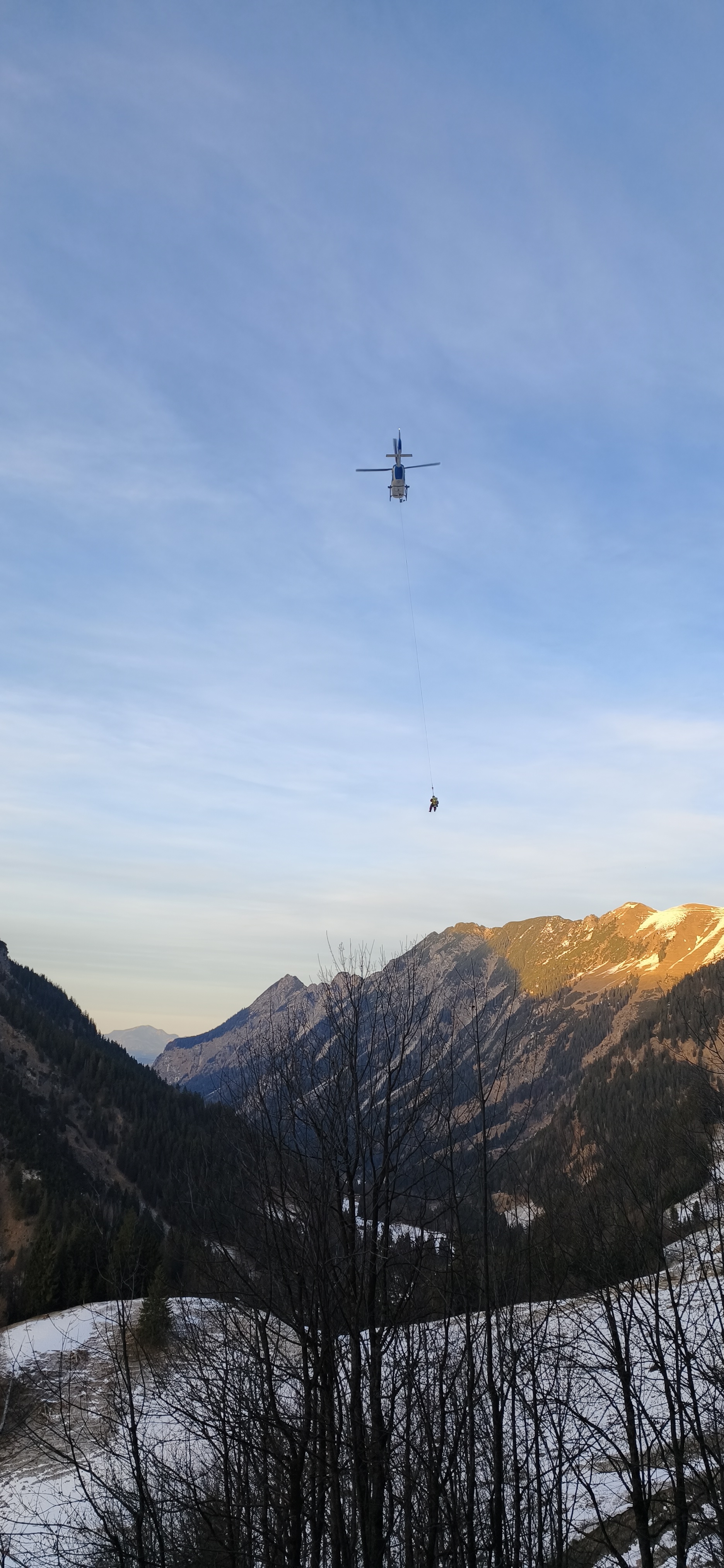 Mi. 31.12: Nahe der Enzianhütte werden deutliche Hilferufe vernommen. Auf dem Weg zur Hütte rutscht ein Bergsteiger ca. 200 m über vereistes/verschneites Gelände und erleidet schwere Verletzungen. Er kann sich zurück zum Weg vorarbeiten, sein Handy aber aufgrund der Verletzungen nicht bedienen. Christoph 17 fliegt noch vor Einbruch der Dunkelheit an - Rettung & Transport in Klinik. Dass seine Hilferufe gehört wurden ist ein lebensrettender Glücksfall.