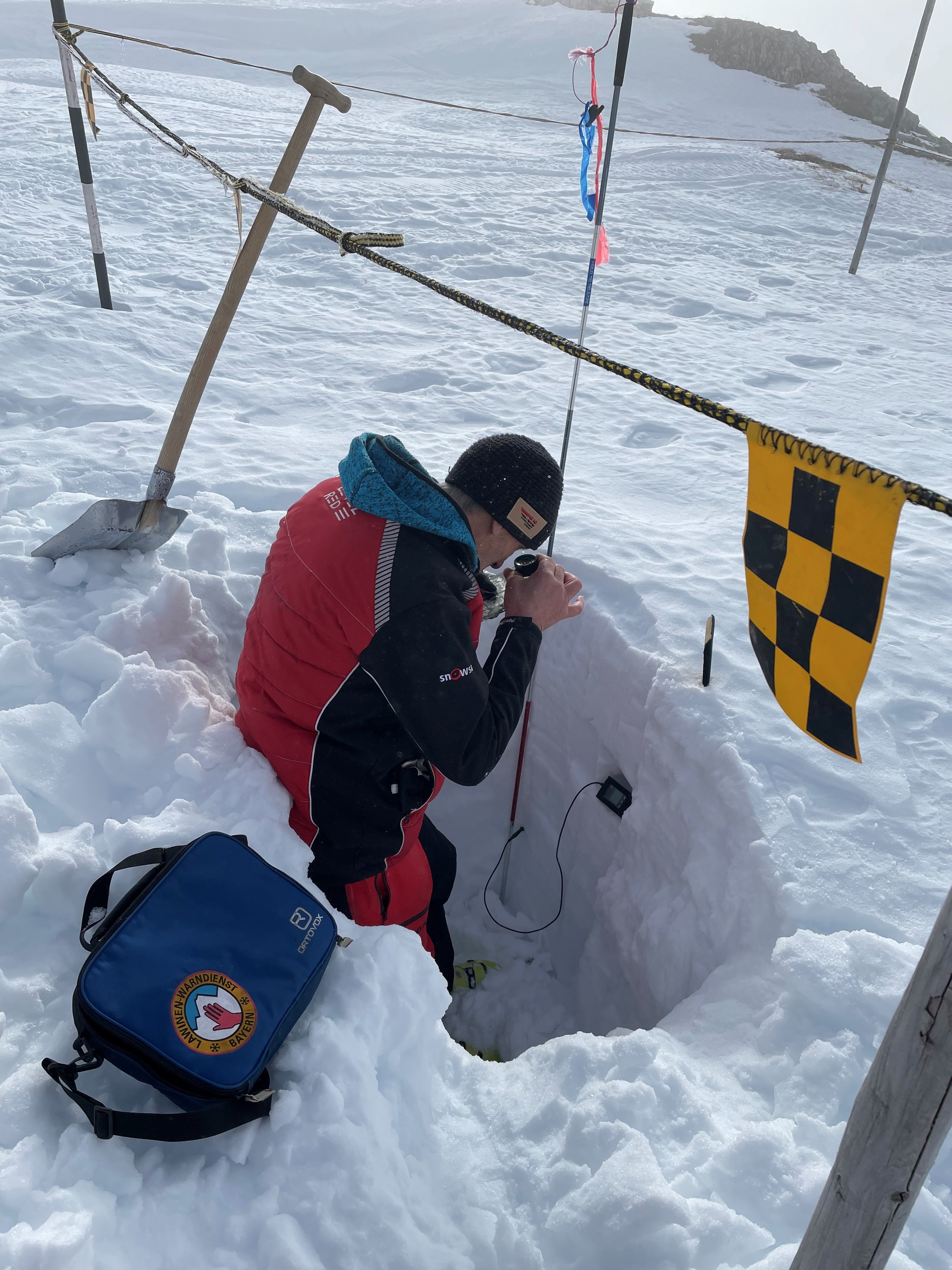 Messfelder des Lawinenwarndienstes werden an Fellhorn & Nebelhorn durch die Skiwacht betreut. Zur Analyse des Schneedeckenaufbaus erstellt die Kommission Schneeprofile und beurteilt Schichtungen/ Triebschnee.
